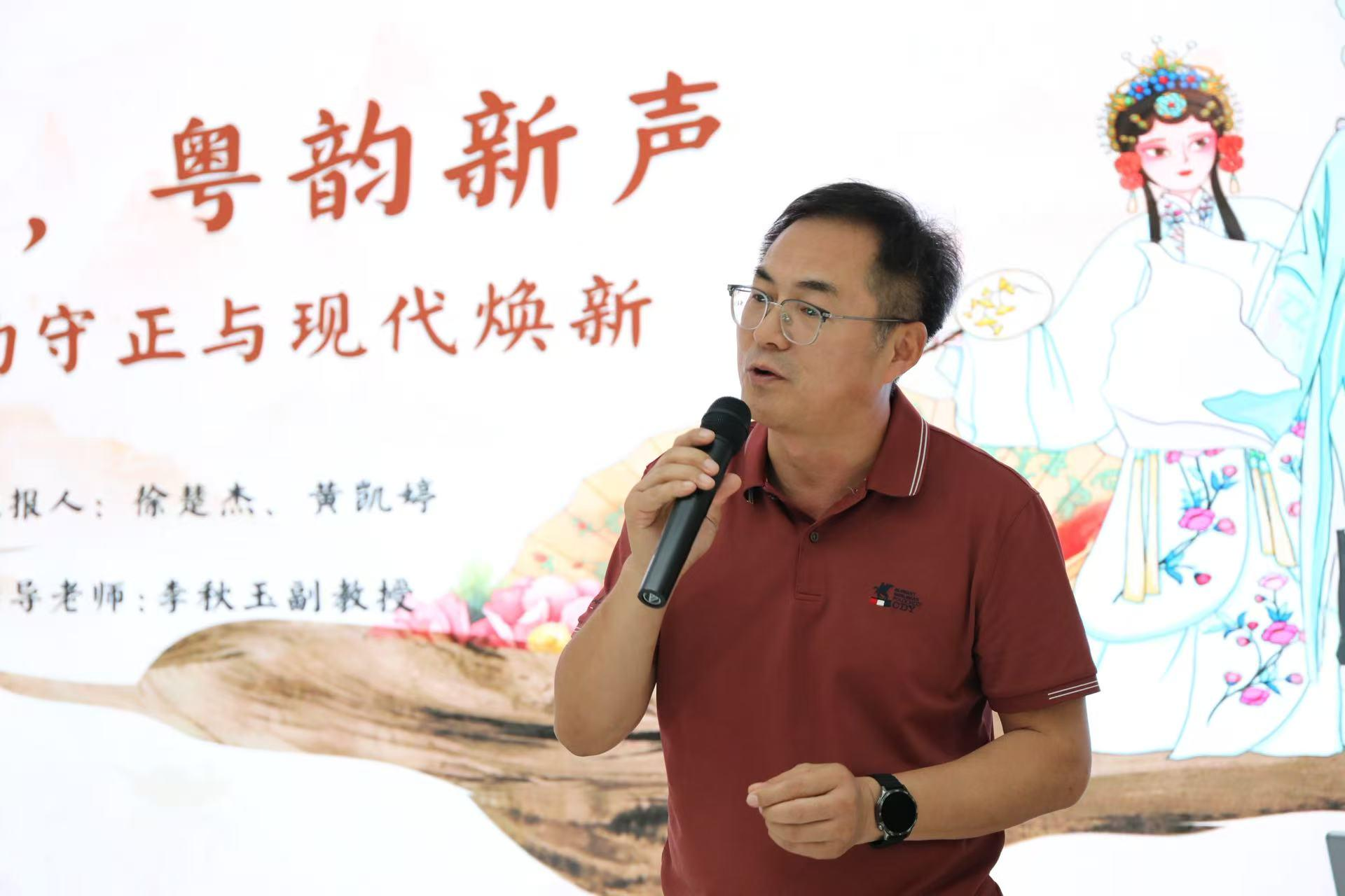 在焕新破圈方面,黄凯婷同学介绍粤剧通过艺术形式创新、拓展传播渠道、跨界叙事等方式,推出了《红头巾》《白蛇传·情》《决战至燎原》等优秀作品,融入现代元素,扩大了受众群体。此外,粤剧还积极融入民俗活动,如2025年广东粤剧院携《借伞》登上央视春晚。最后,从粤剧的“守”与“破”中得出学术深耕、创作创新、传播实践、拓展视野格局等启示,也让听众对粤剧的传承与发展有了更深入的认识。